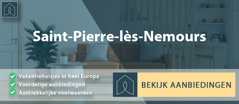 Je kunt ook besparen door het bespreken van een particuliere vakantiewoning in Saint-Pierre-lès-Nemours. Een prive vakantiehuis is een huisje dat eigendom is van een particulier. Meestal zijn deze woningen niet gelegen op parken maar op een bijzondere locatie. Particuliere huisjes krijgen vaak net een beetje extra liefde en geven je een zorgeloze vakantie met veel privacy. Tevens zal de verhuurder ook op het terrein aanwezig zijn. De uitbater helpt je ook op weg met dagtripjes en kan je adviseren over restaurants en de lokale keuken. Privé vakantieappartementen kun je boeken bij websites als Airbnb, Belvilla, Hometogo, Interhome, Novasol, Natuurhuisje.nl.