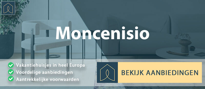 Een normaal vakantiehuisje bij Moncenisio kost zo’n €140,70 per dag. Voor een weekendje weg betaal je om en nabij de €422,10. Voor een week (vaak aankomst op vrijdag) is € 984,90 een gemiddeld totaalbedrag. De verhuurprijzen zijn veel ongunstiger als je op vakantie wil tijdens de algemeen geldende schoolvakanties zoals zomervakantie, kerstvakantie, herfstvakantie, voorjaarsvakantie en de grote feestdagen zoals Paasdagen en Goede Vrijdag, Goede Vrijdag, Sinterklaas, Oud & Nieuw, Hemelvaart, Kerstdagen.