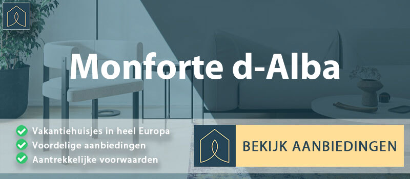 Zoek je specifiek naar het voordeligste vakantiehuisje in Monforte d’Alba? Een accommodatie reserveren biedt veel pluspunten: het geeft een huiselijke sfeer, de meeste voorzieningen heb je bij de hand, er is lekker veel privacy en de bungalows staan vaak op afgelegen locaties. Aan het oriënteren op een leuke Italiaanse accommodatie voor enkele dagen (weekendje) of wellicht een ruime groepsaccommodatie voor een grote groep? Via onze specialisten verstrekken we comfortabele huisjes op de gaafste locaties!