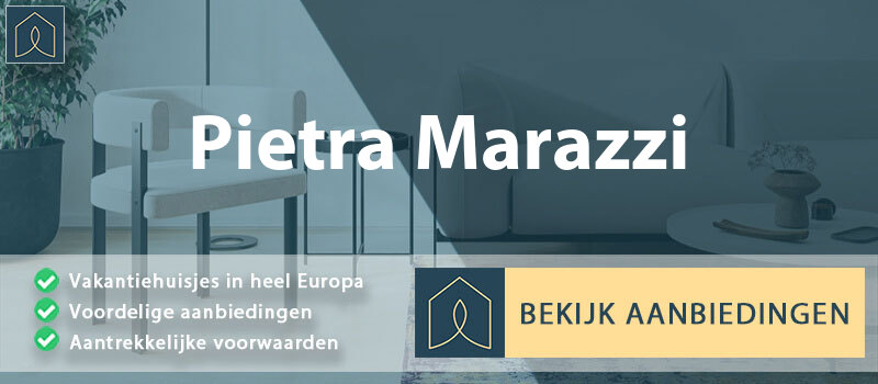 Bekijk de beschikbare vakantiewoningen in Pietra Marazzi en analyseer de prijs per nacht, ligging (afstand tot diverse bezienswaardigheden) en voorzieningen. Scroll door de foto’s voor een goede indruk. Lees voor het boeken ook altijd eerst de ervaringen van eerdere vakantiegangers.