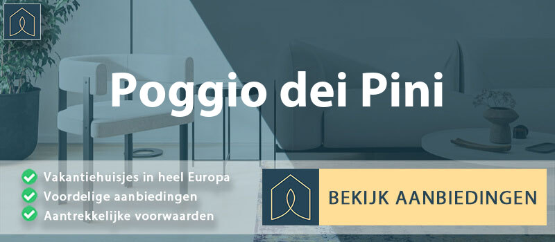 Met de hele familie naar het leukste vakantiehuisje in Poggio dei Pini? Een verblijf reserveren zorgt voor veel plezier: het zijn kant-en-klare locaties, ze zijn van alle gemakken voorzien, er is lekker veel privacy en de huisjes staan dikwijls op de meest bijzondere plekken. Zoek je een heerlijke Italiaanse accommodatie voor een paar dagen er tussenuit of misschien een ruime groepsaccommodatie voor een weekje weg met vrienden of familie? Op deze huisjes-vergelijker verstrekken we de beste huisjes op bijzondere stekjes!