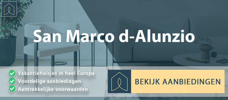 Bekijk het aanbod met beschikbare vakantiewoningen in San Marco d’Alunzio en check zaken als de prijs, ligging (op of buiten vakantiepark) en faciliteiten. Bekijk de foto’s voor een goede indruk. Lees ook beschikbare recensies door van Nederlanders die het huisje al eens geboekt hebben.