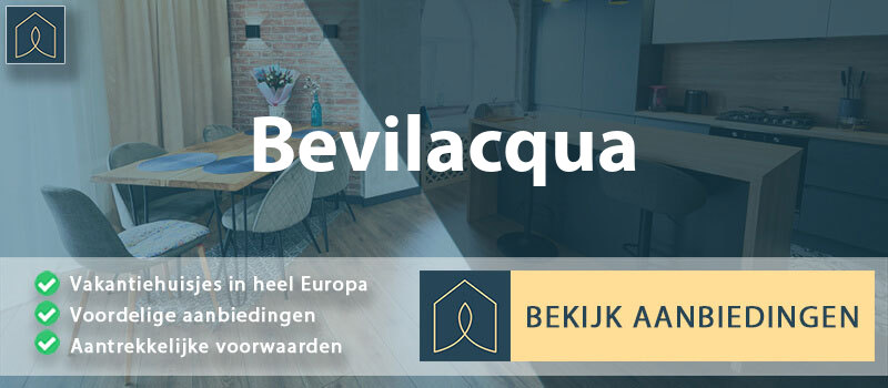 Lees direct meer info over de beschikbare vakantiewoningen in Bevilacqua en check zaken als de verwachter prijzen, ligging (op of buiten vakantiepark) en faciliteiten. Scroll door de foto’s voor een sfeerimpressie. Vergeet ook niet ervaringen te lezen van Nederlanders die het huisje al eens geboekt hebben.