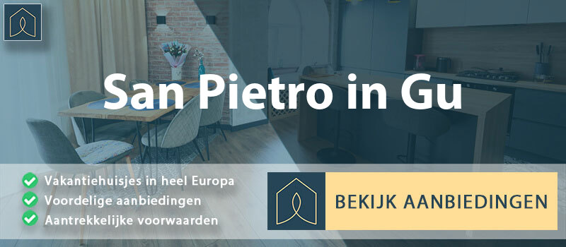 Je kunt ook besparen door het bespreken van een particuliere vakantiewoning in San Pietro in Gu. Zo’n prive vakantiehuis wordt niet geëxploiteerd door een bedrijf of park. Tevens staat het huisje niet op een druk recreatiepark met op privé gebied (rustig, afgelegen, toegankelijk). Particuliere huisjes zijn vaak met zorg ingericht en geven je een zorgeloze vakantie met veel privacy. In sommige situaties verblijft de eigenaar in de directe omgeving. De eigenaar van het huisje geeft ook suggesties voor leuke dingen die je kunt doen en restaurants. Privé vakantieappartementen kun je boeken bij websites als Interhome, Belvilla, Natuurhuisje.nl, Hometogo, Micazu, Airbnb.