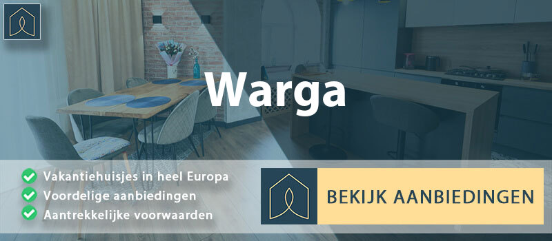 Wil je graag een vakantiehuisje in Warga? Een huisje boeken zorgt voor veel plezier: de woningen zijn mooi, compleet, je hebt voldoende ruimte voor familie en vrienden, vaak beschikken ze over een eigen terras en je overnacht op toegankelijke locaties. Ben je aan het zoeken naar een heerlijke Nederlandse accommodatie voor een lang weekend weg of een uitgebreide groepsaccommodatie voor gezelschappen met kleine kinderen? Via dit platform check je de mooiste huisjes op inspirerende locaties!