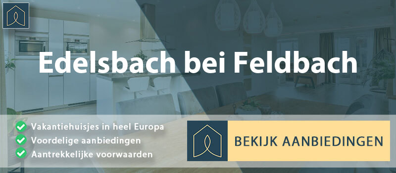 Het etiket vakantieverblijf kan vele betekenissen hebben. Via internet boek je meerdere soorten vakantiehuisjes waar je kunt logeren. Van een volledig ingerichte bungalow voor een aangenaam weekend met je metgezel tot een exclusief huis voor groepen voor een reünie of vriendenvakantie. Elk type vakantiewoning heeft zo zijn pluspunten en minpunten. In de onderstaande opsomming vind je meest gezochte huuraccommodaties in Edelsbach bei Feldbach.