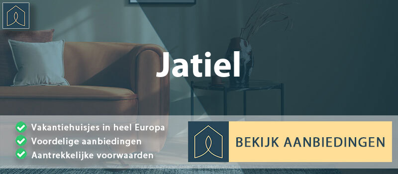 Lees direct meer info over de beschikbare vakantiewoningen in Jatiel en analyseer de prijs per nacht, ligging (afstand tot centrum) en schoonmaakservice. Bekijk de foto’s om alvast een beeld van de accommodatie te krijgen. Lees ook de reviews van Nederlanders die het huisje al eens geboekt hebben.