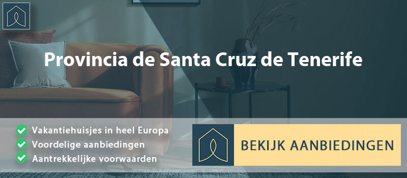 Het nagaan van het mooiste vakantiehuisje in Provincia de Santa Cruz de Tenerife is niet altijd even makkelijk. Je kunt kiezen uit steeds meer aanbod en elke accommodatie biedt een andere beleving. Advies: maak eerst een lijst met wat je belangrijk vindt. Wil je de beschikking hebben over een groot woonoppervlakte, kindvriendelijke inrichting of wil je veel wellness faciliteiten zoals sauna, hottub of jacuzzi? Door te kijken naar gewenste voorzieningen reserveer je in een handomdraai de perfecte huurwoning. Zie ook onze pagina met informatie over Kerstvakantie.