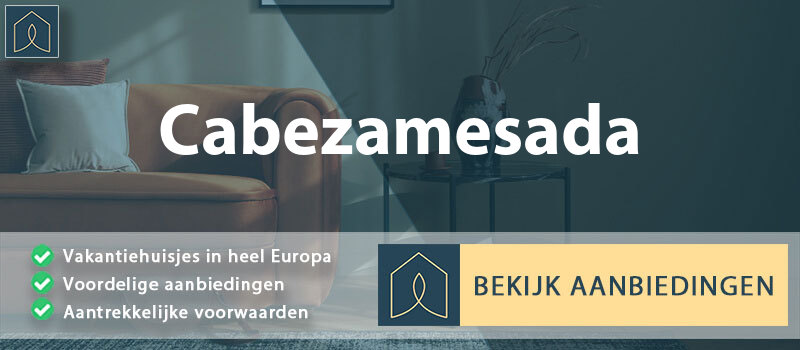 Een standaard vakantiehuisje bij Cabezamesada kost om en nabij de €108,60 voor 1 nacht. Voor een weekend (3 nachten) betaal je gemiddeld rond de €325,80. Een week op vakantie? Dan is € 760,20 een gemiddeld totaalbedrag. De prijsindicaties liggen over het algemeen hoger in periodes zoals de jaarlijkse schoolvakanties zoals voorjaarsvakantie, kerstvakantie, herfstvakantie, zomervakantie en de grote feestdagen zoals Pinksterweekend, Goede Vrijdag, Hemelvaart, Oud & Nieuw, Paasdagen en Goede Vrijdag, Kerstdagen.