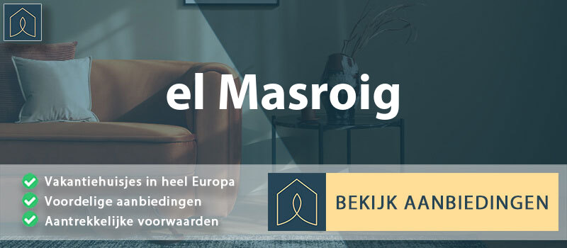 Heerlijk uitrusten in je eigen vakantiehuisje in el Masroig? Een huis reserveren zorgt voor een onbezorgde vakantie: de woningen zijn mooi, compleet, je hebt veel faciliteiten, je hebt lekker de ruimte buiten en ze staan vaak op verrassende locaties. Kijk je naar een moderne Spaanse accommodatie voor enkele dagen (weekendje) of mogelijk een mooie groepsaccommodatie voor een grote groep? Op deze huisjes-vergelijker check je de goedkoopste huisjes op de gaafste locaties!