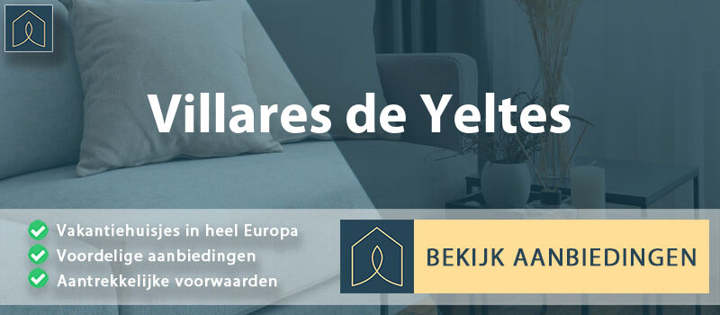 Wil je voor een gunstige prijs boeken? A.d.h.v. de geldige aanbiedingen scoor je heel betaalbaar een mooie vakantie (weekend of week). Ga je er heerlijk spontaan tussenuit? Doorzoek dan de reizen in het segment ‘last-minute’. Enkele verhuurwebsites geven ook extra vroegboekkorting op het moment dat je vroeg in het seizoen reserveert. In het onderstaande overzicht vind je in het kort de tofste acties en deals voor het goedkoopste vakantiehuis in Villares de Yeltes.