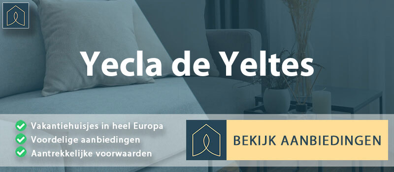 Een normaal vakantiehuisje bij Yecla de Yeltes kost circa €109,30 per nacht. Voor een weekendje van 3 nachten betaal je zo’n €327,90. Voor 7 nachten (1 week) is € 765,10 een heel redelijke prijs. De kosten kunnen behoorlijk hoger uitvallen in vakantieperiodes zoals de vertrouwde schoolvakanties zoals zomervakantie, meivakantie, herfstvakantie, voorjaarsvakantie en feestdagen zoals Goede Vrijdag, Paasdagen en Goede Vrijdag, Hemelvaart, Oud & Nieuw, Kerstdagen, Pinksterweekend.