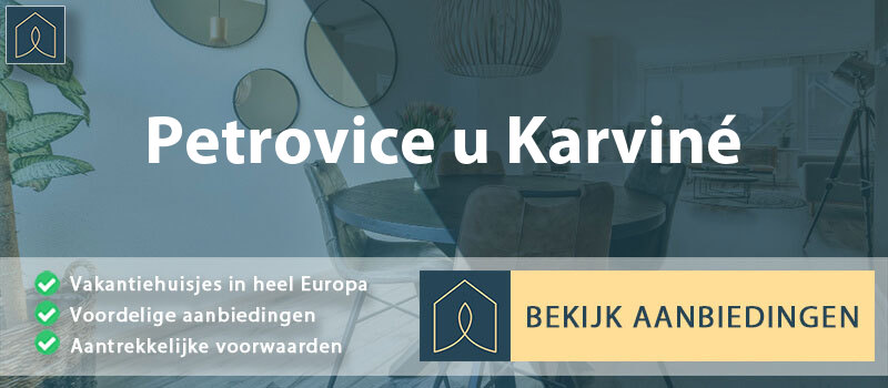 Bekijk het overzicht met beschikbare vakantiewoningen in Petrovice u Karviné en onderzoek het tarief per nacht, ligging (op of buiten vakantiepark) en schoonmaakservice. Check foto’s van het huisje om alvast een beeld van de accommodatie te krijgen. Lees voor het boeken ook altijd eerst de ervaringen van eerdere vakantiegangers.