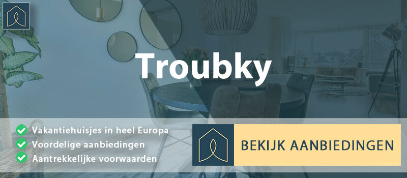 Een doorsnee vakantiehuisje bij Troubky kost om en nabij de €50,40 voor één nacht. Voor een weekend (3 nachten) betaal je circa €151,20. Voor een week (vaak aankomst op vrijdag) is € 352,80 een gemiddeld prijskaartje. De tarieven liggen over het algemeen hoger als je kiest voor populaire reisperiodes als schoolvakanties als kerstvakantie, zomervakantie, meivakantie, herfstvakantie maar feestdagen zoals Sinterklaas, Kerstdagen, Oud & Nieuw, Pinksterweekend, Goede Vrijdag, Paasdagen en Goede Vrijdag.